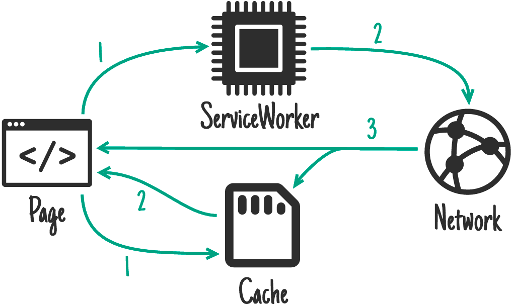Service worker je speciálním typem web workeru, což je označení pro skript, který je spuštěn odděleně od hlavního vlákna pro vykreslování webové stránky. Stránku jako takovou neomezuje. Samotný service worker proto může odesílat push notifikace a synchronizovat data na pozadí, jelikož se jedná o programovatelnou proxy mezi stránkou a sítí, která umožňuje zachytit a ukládat síťové požadavky.