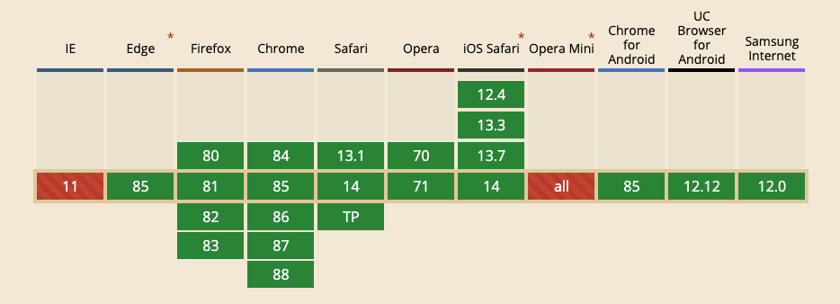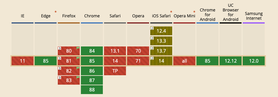 Opět platí, že – až na Operu – je podpora napříč prohlížeči poměrně slušná.