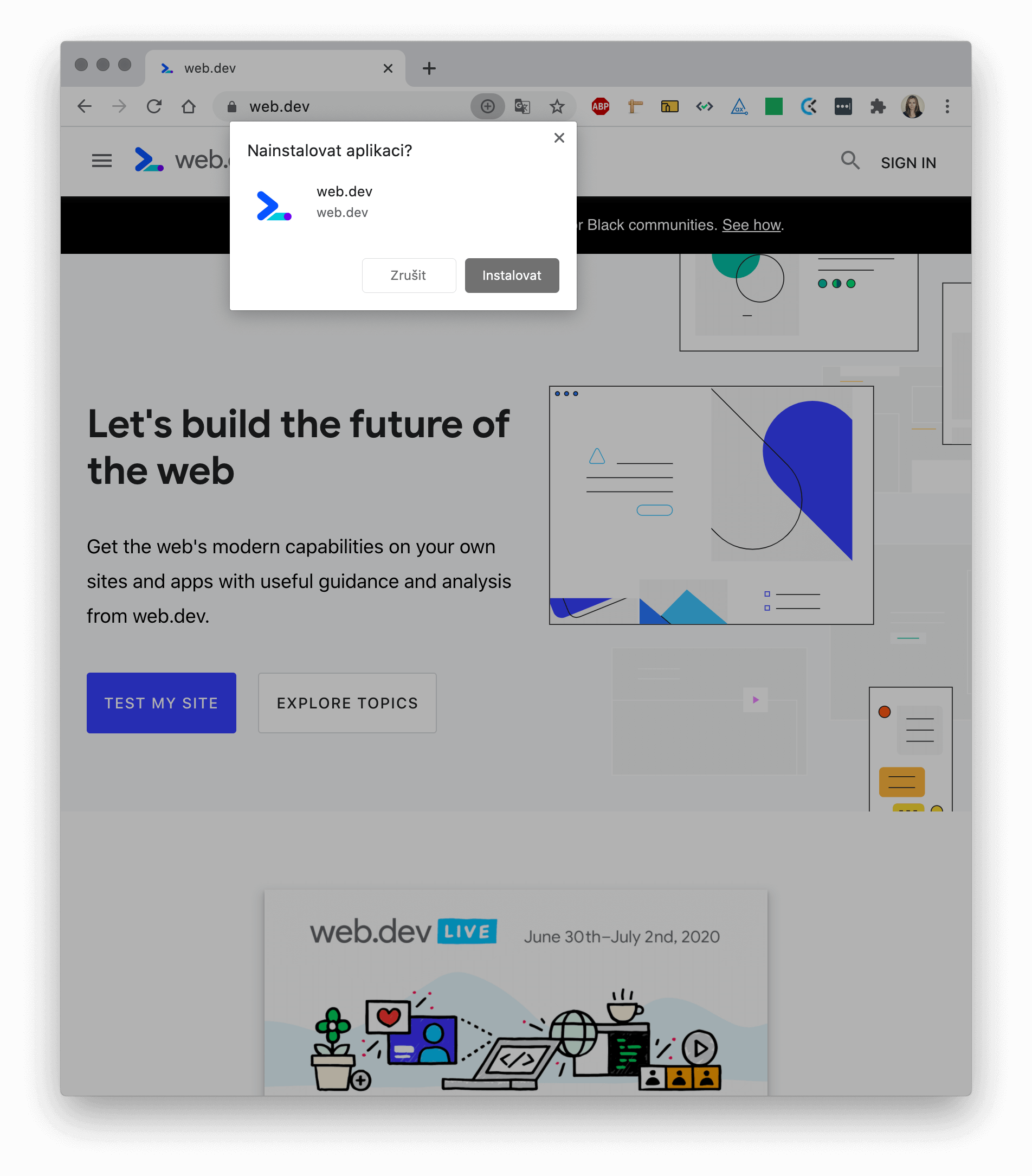 Protože není cílem a především ani možné detailně sepsat splnění všech kritérií na PWA v tomto článku, budeme předpokládat, že váš web splňuje následující: